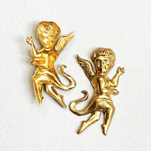 25×44mmブラス製、ユニークな天使の珍しいスタンピング。