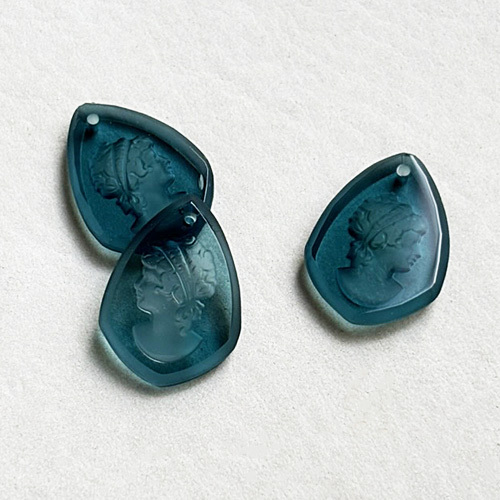 22x16mmシールド形、グラス製インタリオカメオのペンダント。