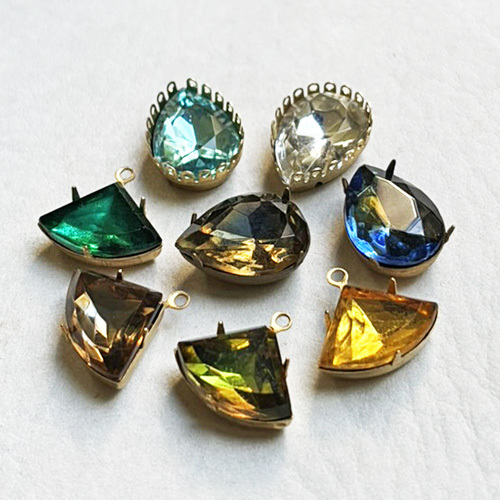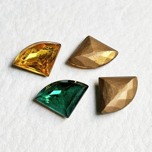 チェコヴィンテージ、18x13mm扇形のグラスストーン。