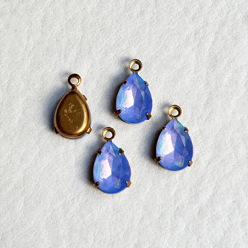 10x7mmティア形のグラスストーンがブラス製の枠にセットされたパーツ。